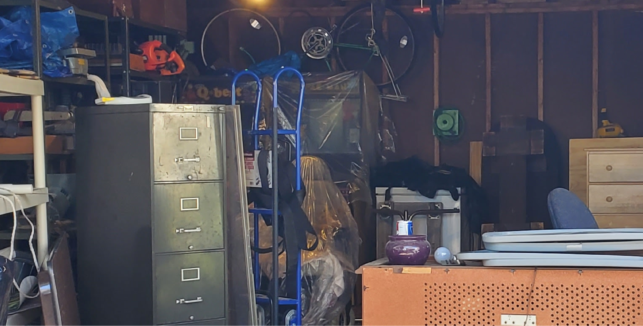 It took months and multiple large dumpsters to clear. One bright spot however was seeing two upright arcade cabinets at the back corner of the garage. We had no idea when or where the person had acquired them.